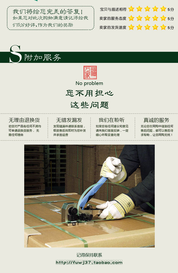 文山福萬家為保證每位客戶都可以買得開心用得放心,特別提供了“30天無理由退換貨”服務,每位客戶在本店購買任何產品30天之內,若對產品有不滿意,只需向我們說明原因,即可換貨或者退回現金,退回的運費均由我們來承擔。我們不敢保證100%的客戶都能對產品滿意,但是歡迎客戶指出我們的不足之處,對于客戶的意見我們始終樂于傾聽。